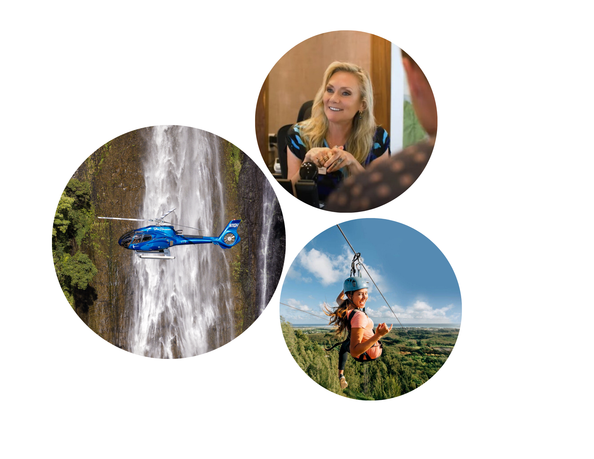 Collaborate with Blue Hawaiian Helicopters for private charters, events, or custom group adventures, providing guests with unique, memorable experiences. With helicopter bases on 5 islands, we make it easy to create tailored experiences across the state. Learn more
