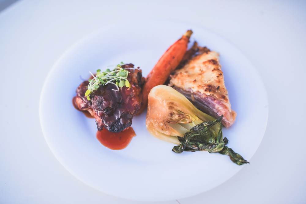 Guest dine on a chef-prepared gourmet 4-course dinner at intimate two-top tables seated on deck. The courses are fixed with exception to your entree, which you must select when booking. We do not offer vegan/veg appetizers.