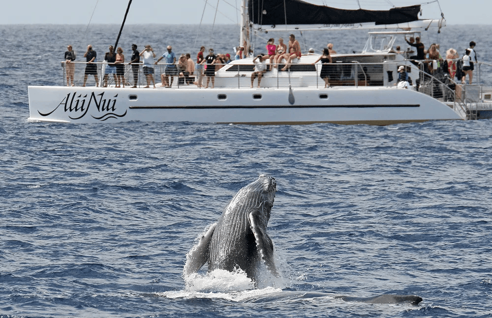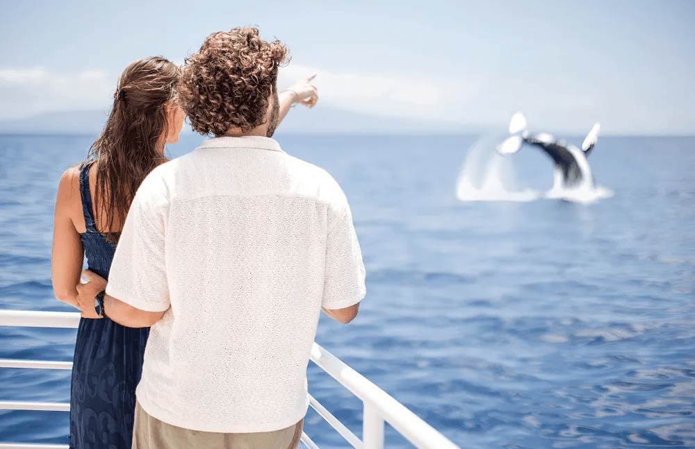 Join us for an unforgettable encounter with Maui’s most cherished visitor, the majestic humpback whale. The warm, welcoming waters off West Maui are a favored retreat for these incredible creatures. Delight in selections from our premium open bar as you marvel at the whales breaching, tail-slapping, and playing in their natural paradise. Our daily whale watch tours run from December 15th until these gentle giants make their way back to Alaska in April.
