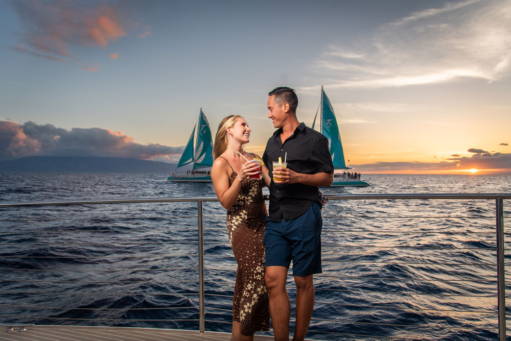 Sip on your choice of beer, wine, champagne, mai tai or tropical cocktail from our open bar, and savor our chef’s selection of appetizers. Watch the sun dip below the horizon and paint the sky with vibrant colors. Experience the magic of Maui at sunset on this unforgettable sail.
