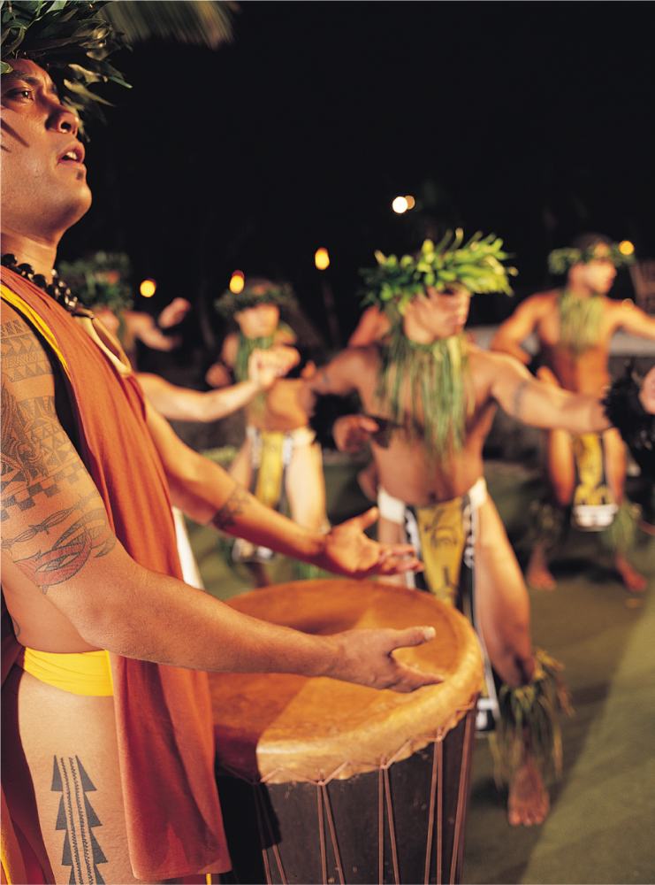 Sit one of two ways—at a dining table on chairs, or seated in the first level around the stage, where you’ll sit cross-legged on cushions and dine from a low-set table. Each table fits up to eight (8) l au guests and will be shared, depending on your party size. Guests may choose from our Traditional Hawaiian Mat seating (dining on a low table, seated cross-legged on cushions – No back support) – (No outside chairs, car seats, or strollers allowed), or our regular Conventional Tables and Chairs. Please confirm your preferred seating style at the time of reservation, as we will not be able to move your seating style, as we will not be able to move your seating on the night of the lu‘au. Please let us know of any special considerations such as infants, wheelchair, scooters, etc.